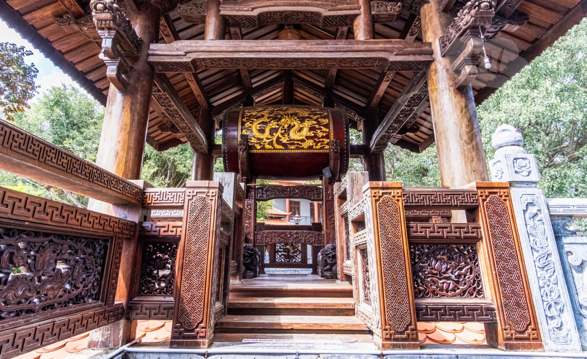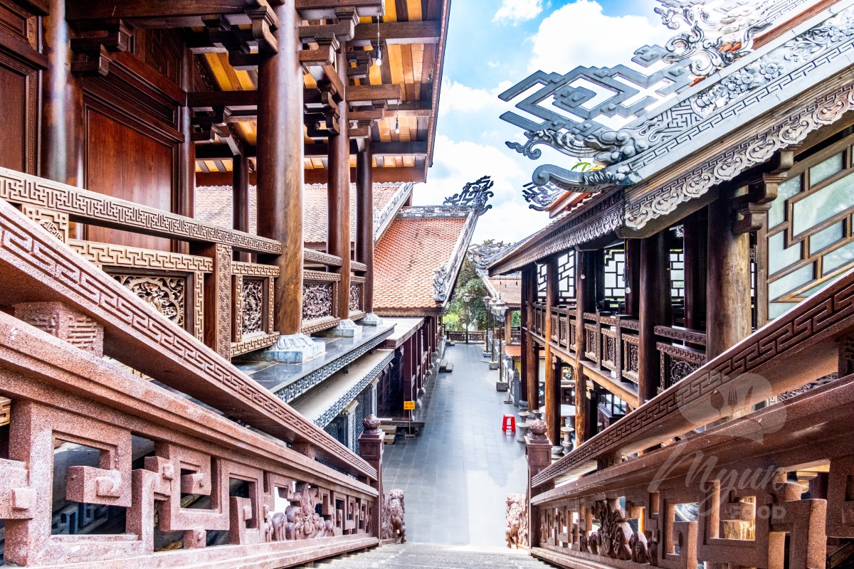 - Thị giác: Ngước nhìn tam quan, chánh điện, lầu chuông. Tranh thủ khung giờ 7–9 h sáng khi nắng xiên, mọi chi tiết mái ngói, khung gỗ, phù điêu rực lên màu vàng mật ong.