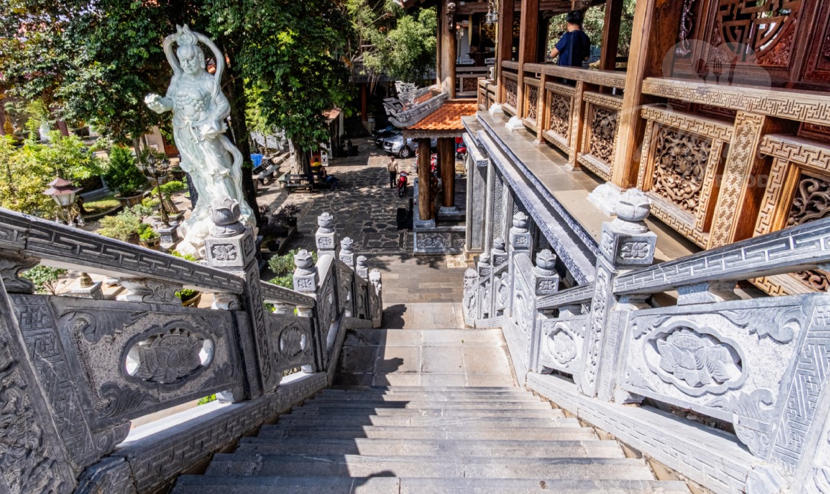 Không tùy tiện dựng giữa lòng phố, chùa được đặt trên gò cao, Tam quan hướng tây nam nhìn xuống con suối Đốc Học quanh năm róc rách. Phía sau là khu phố Thắng Lợi, tượng trưng “hậu sơn” vững chãi. Thế đất tụ khí, sinh tài, giúp ngôi tự 70 năm qua bình an, trở thành “ốc đảo tĩnh lặng” giữa đô thị ồn ào.